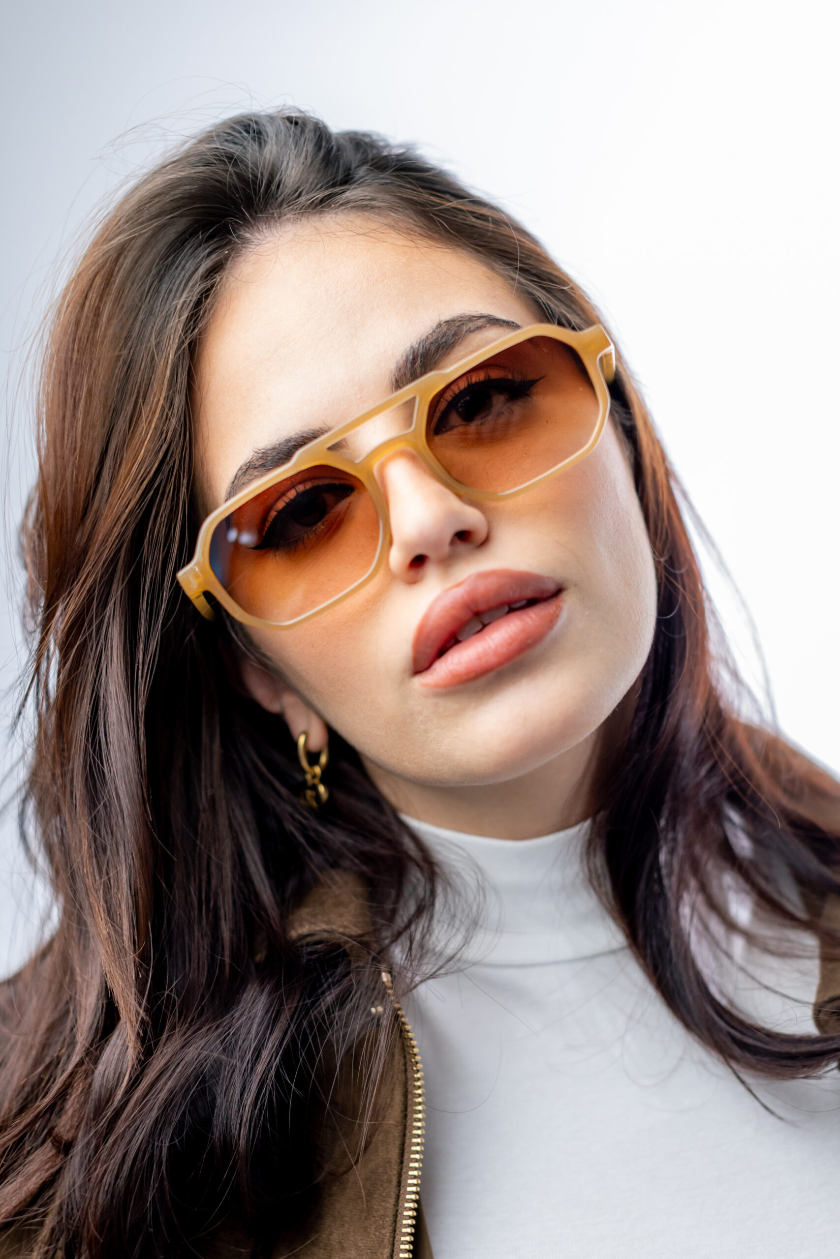 A warm caramel frame paired with a smooth amber gradient lens gives Retrograde a modern yet effortless glow. Its geometric silhouette and cutout brow detail add a bold, architectural edge to any look.